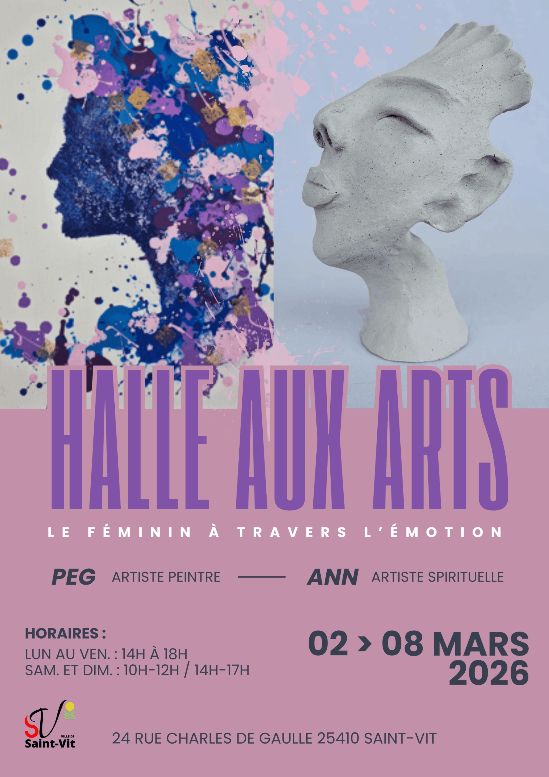 Mar 2026 Exposition Peinture et Sculpture à la Halle aux Arts – Salle EluardExposition Peinture et Sculpture à la Halle aux Arts – Salle EluardDate: Mar 2 - 8 Mar 2026Lieu: Halle aux ArtsCatégorie: Exposition+ d'infos