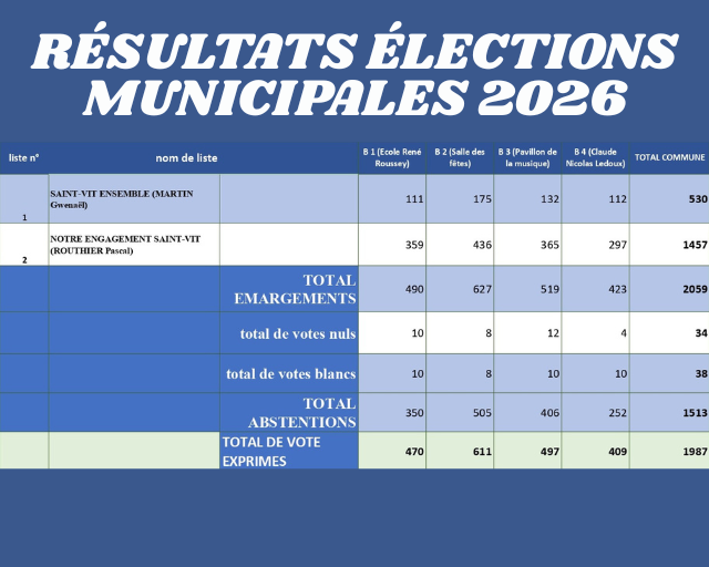 Les résultats du scrutin à Saint-Vit sont désormais connus.